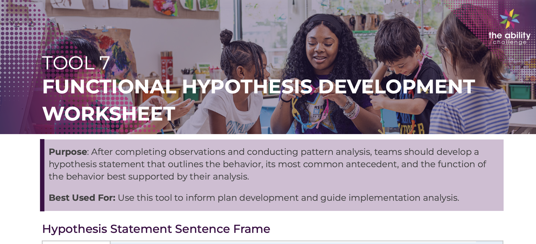 Our Functional Hypothesis Development Worksheet is designed to help teams in conducting pattern analysis and developing hypothesis statements for behavior analysis. By using this worksheet, teams can enhance their decision-making processes and ensure informed plan development.